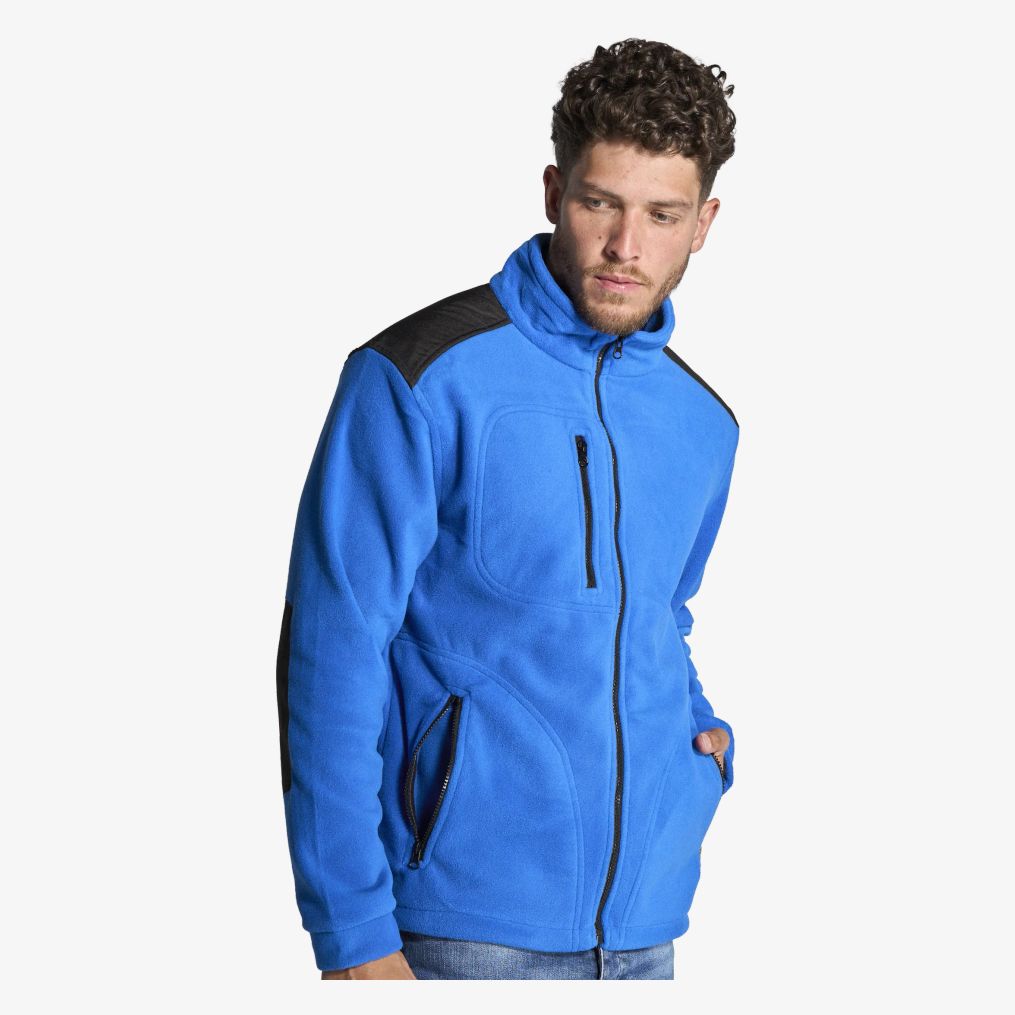 Pile bicolore 340. Pile con zip unisex, rinforzi alle spalle e ai gomiti. Trattamento antipilling. Tasca sul petto tasche laterali con zip.