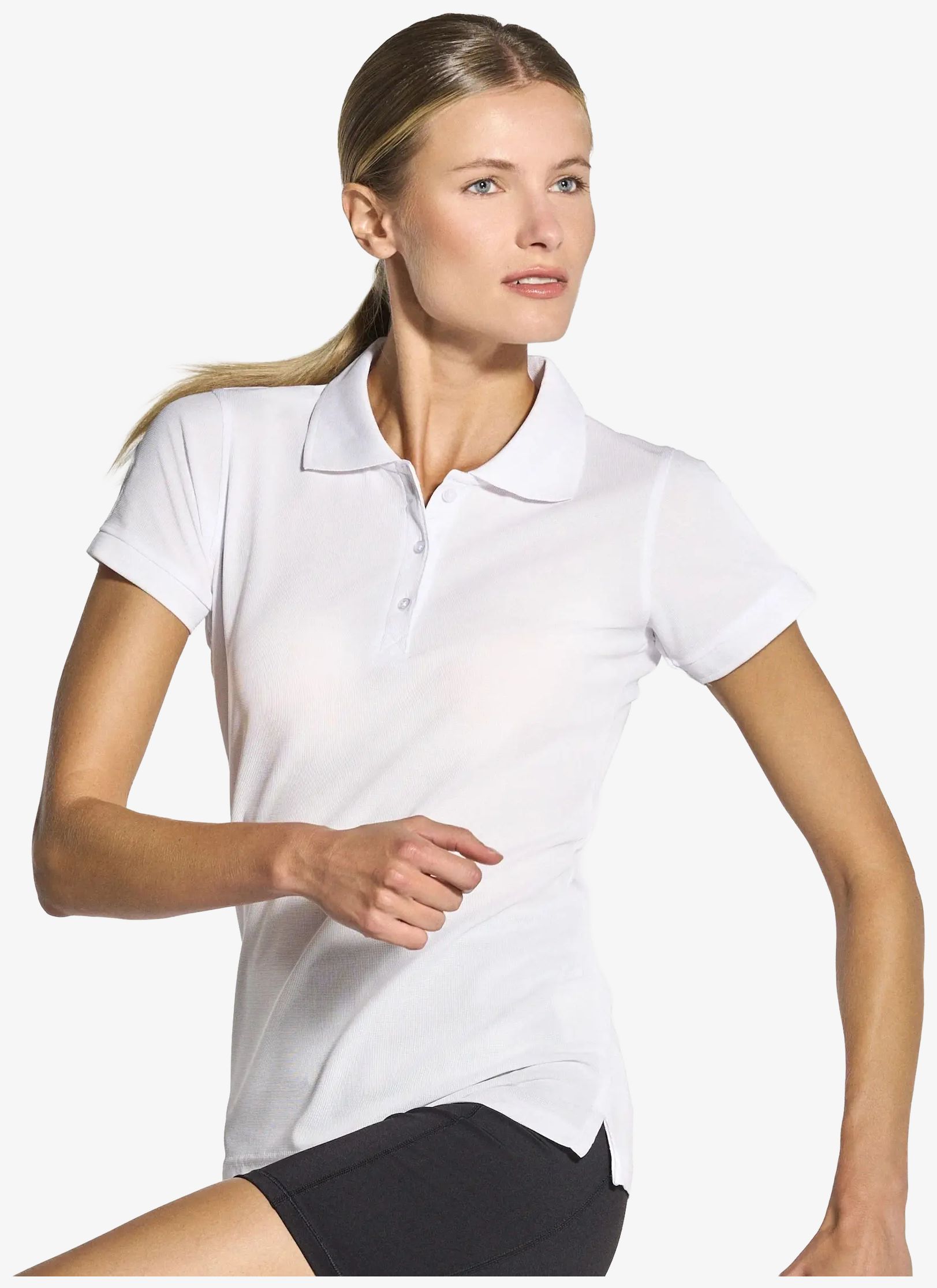Il Sport polo pique lady è un polo sportivo donna realizzato in tessuto piqué. Include una pattina a 3 bottoni tono su tono, un taglio sagomato e un nastro di rinforzo a contrasto. Gli spacchi laterali sono anch'essi a contrasto.