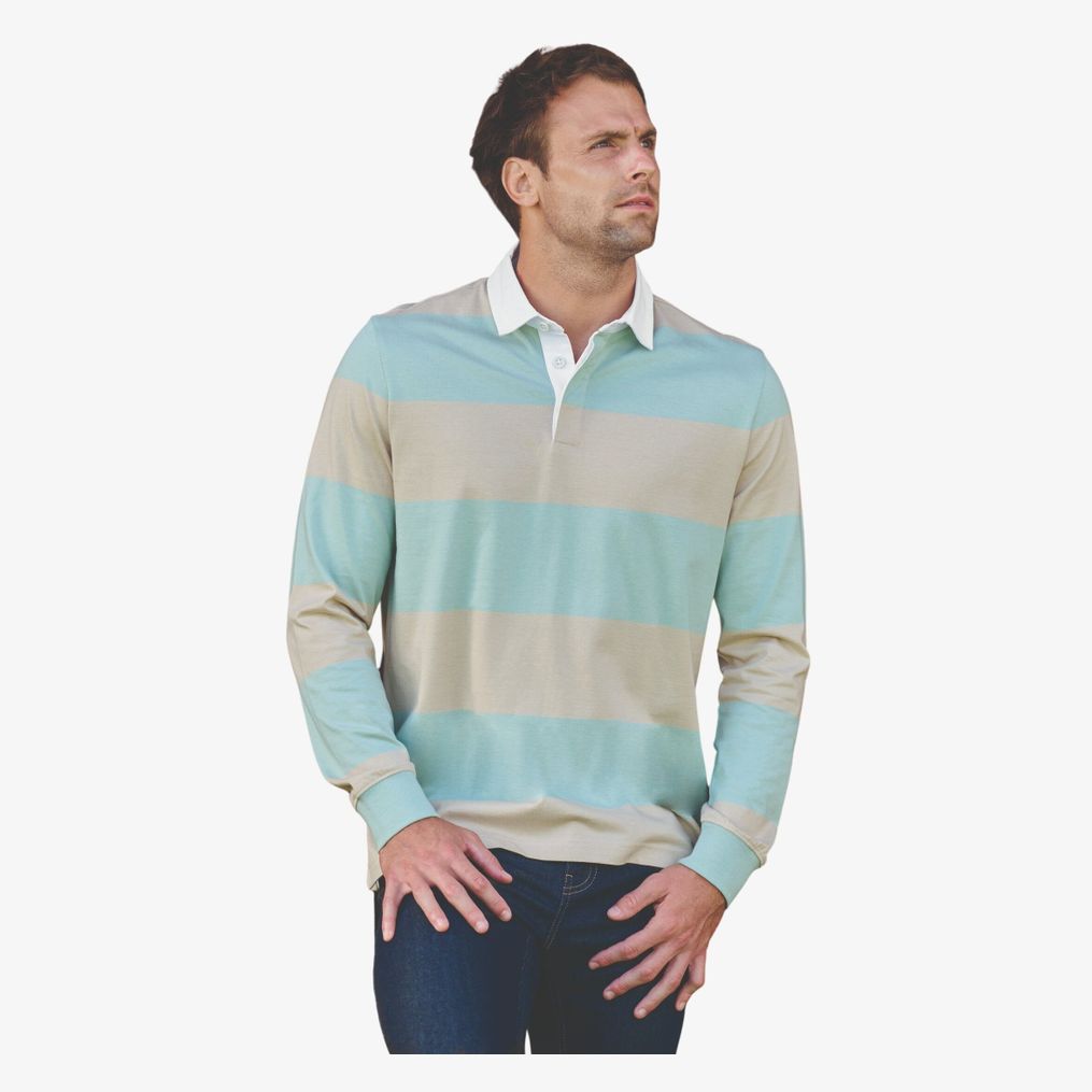 Il polo a righe maniche lunghe unisex è realizzato in cotone pettinato con maglia jersey. Presenta un colletto in cotone twill a contrasto e una bottoniera con patta invisibile e 3 bottoni in gomma tono su tono. La vestibilità è aderente con rinforzo in silicone sulle spalle per il sostegno. Il fondo maniche è in costina tubolare doppia con elastan per limitare la deformazione del polso.