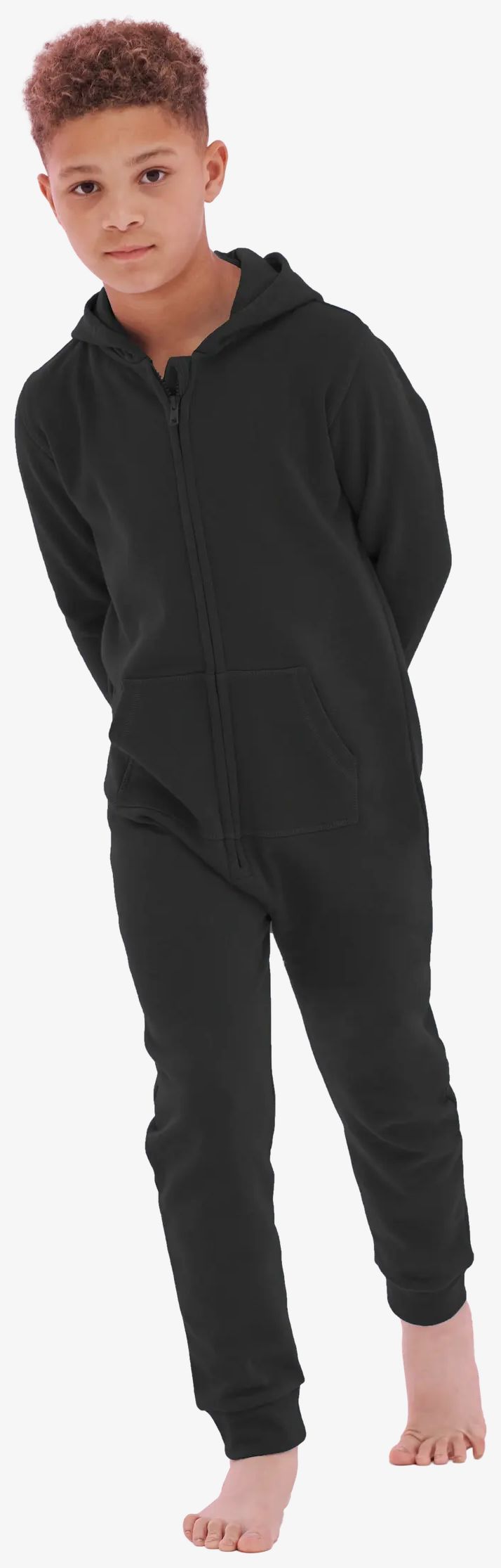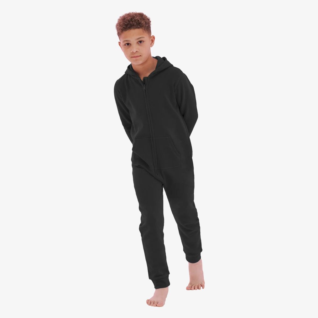 La tutina pigiama per bambini ha un taglio slim con apertura a zip integrale e tasche a marsupio con cuciture piatte. Il cappuccio è foderato per maggior comfort. La composizione standard è 80% cotone e 20% poliestere, eccetto per il colore heather grey che comprende 71% cotone, 23% poliestere e 6% viscosa.