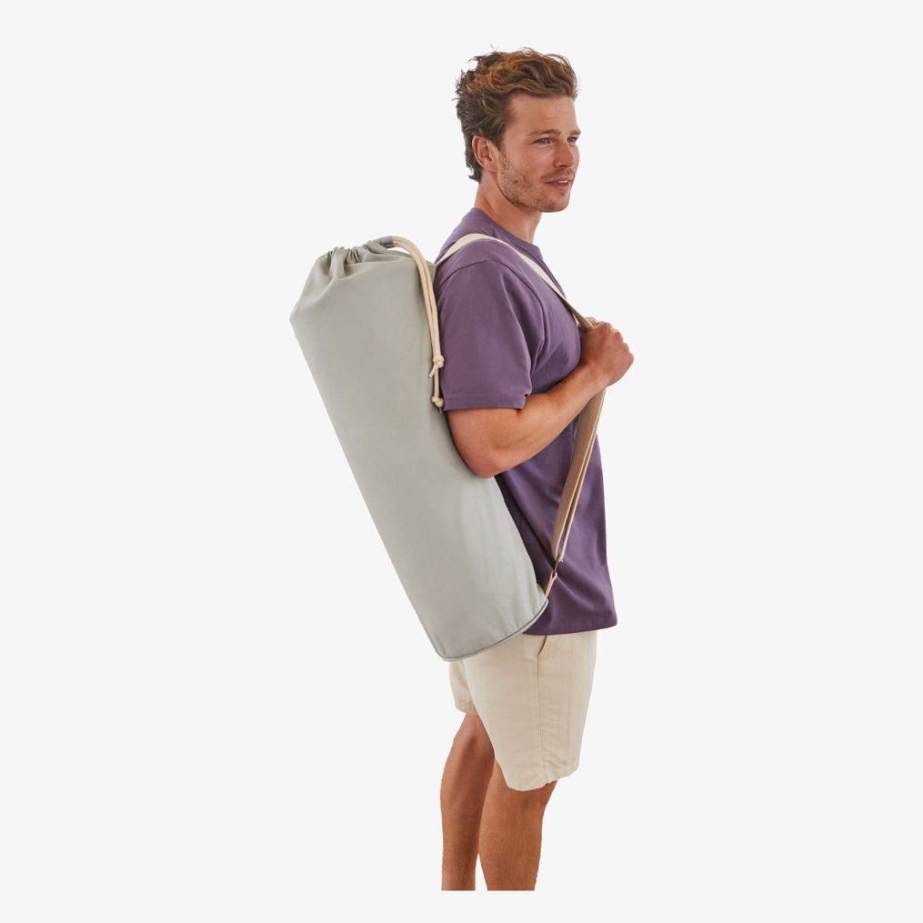 La borsa per tappetino yoga biologica è realizzata in cotone 100% biologico con una tela spessa. La chiusura a coulisse garantisce la sicurezza degli oggetti. La tracolla in tela elastica offre una vestibilità confortevole. Una tasca con cerniera nascosta consente di riporre oggetti di valore.