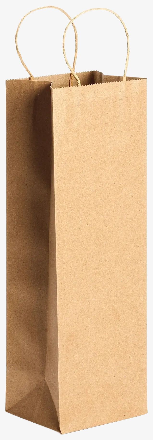 La borsa shopping in carta PINUS presenta una finitura naturale con manici corti rinforzati e ad anello. È adatta per il trasporto di bottiglie.
