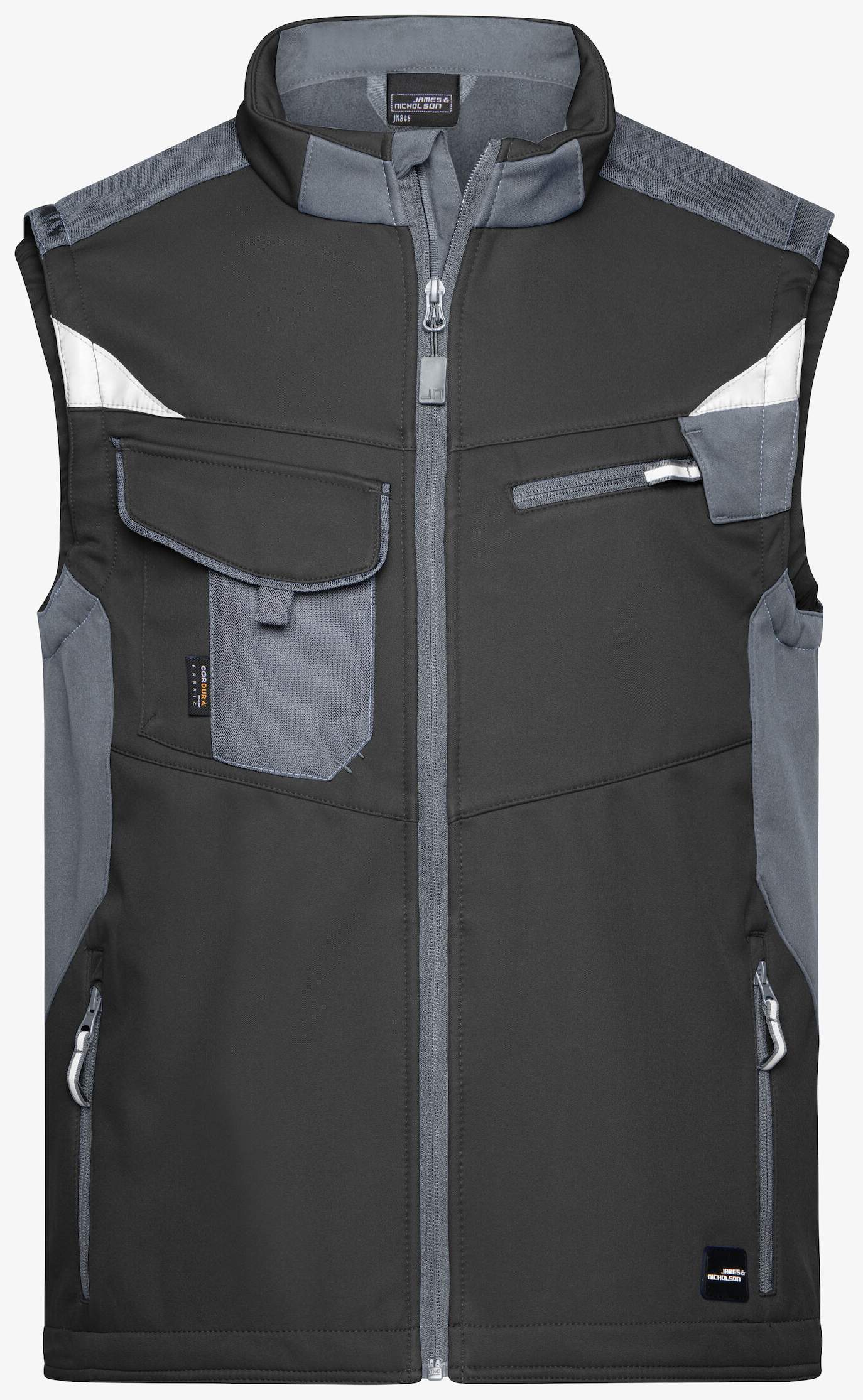 Il gilet softshell senza maniche combina resistenza e funzionalit\u00e0 con un materiale robusto e una protezione antivento idrorepellente. Dispone di un colletto alto e polsini elasticizzati per una tenuta adeguata. Diverse tasche integrate per riporre, con elementi riflettenti sulla schiena.