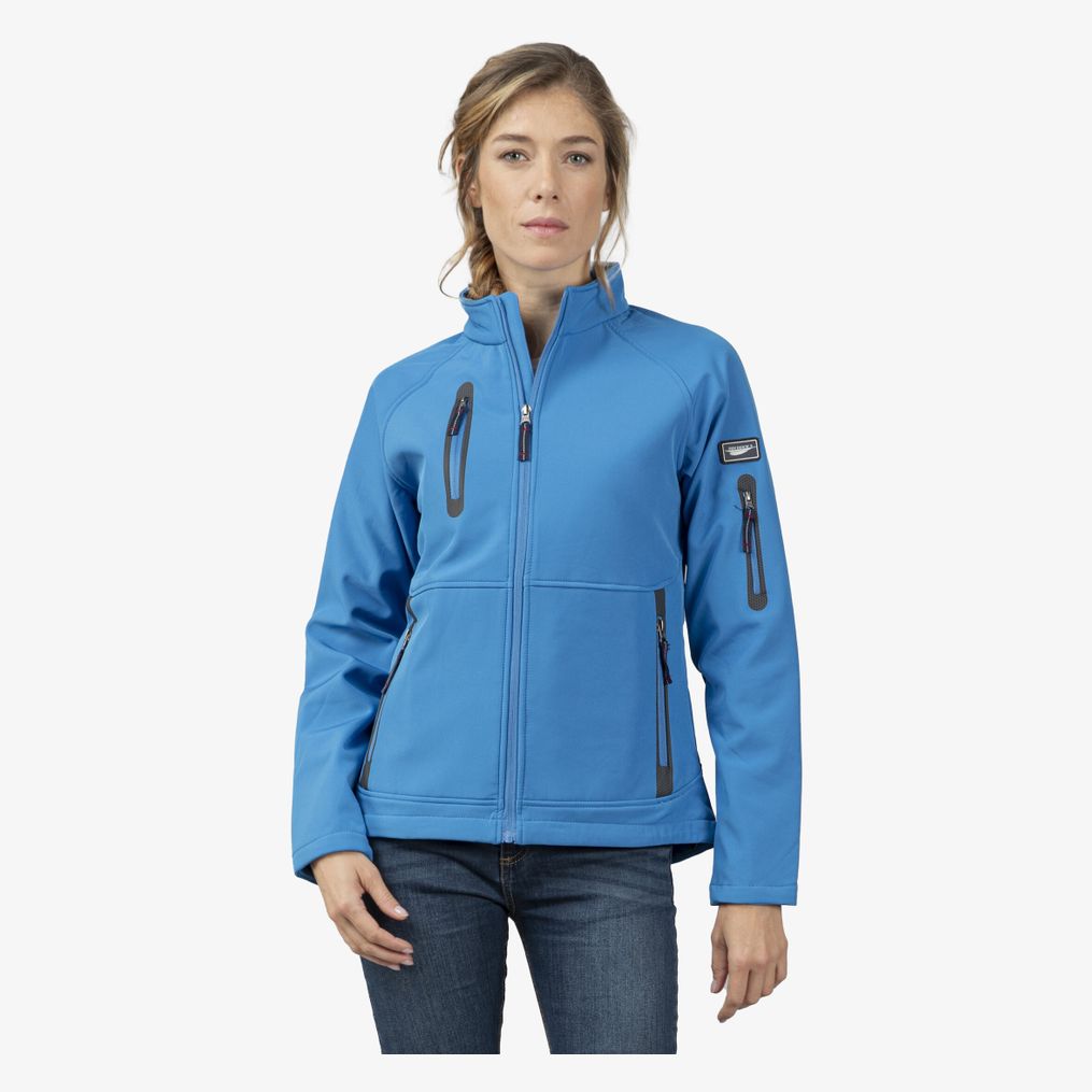 Il softshell donna Newport è adatto all’uso all’aperto con tempo variabile, con tessuto accoppiato a 3 strati, membrana traspirante impermeabile, interno in micropile, 4 tasche esterne con zip e fondo elasticizzato con stopper.