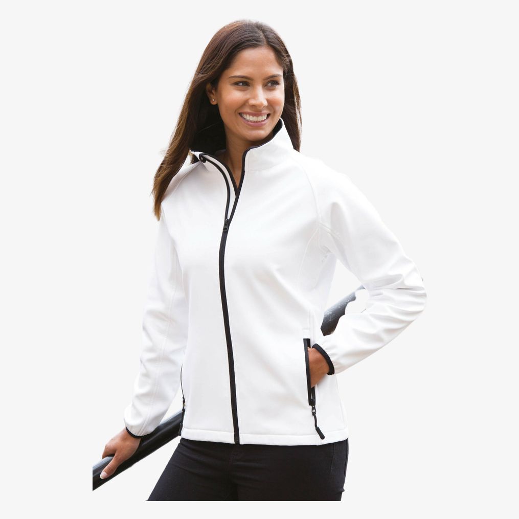 Il softshell Womens Printable softshell in micropile di poliestere \u00e8 realizzato con tessuto elasticizzato a 2 strati comprendente uno strato esterno 100% poliestere e uno strato interno in micropile 100% poliestere. Presenta una chiusura anteriore con zip e proteggi-mento, tasche laterali con zip e polsini elasticizzati. La vestibilit\u00e0 \u00e8 aderente.