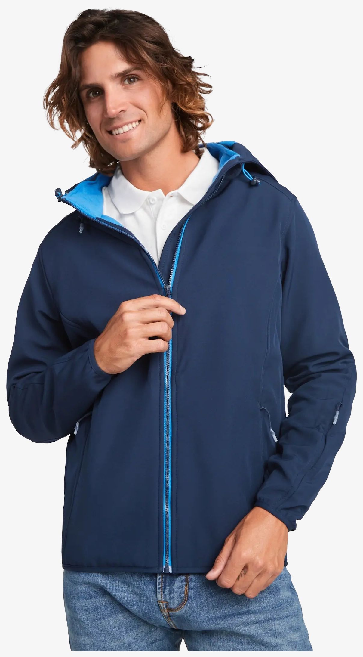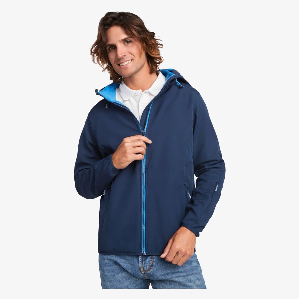 Il softshell a due strati comprende una zip centrale iniettata a contrasto con proteggi-mento cursore. L'interno è in tessuto micropile a contrasto e caldo. Presenta due tasche laterali, una tasca sul petto con zip invisibile, una piccola tasca sulla manica sinistra, un bordino elasticizzato ai polsi e un cappuccio staccabile foderato in micropile.