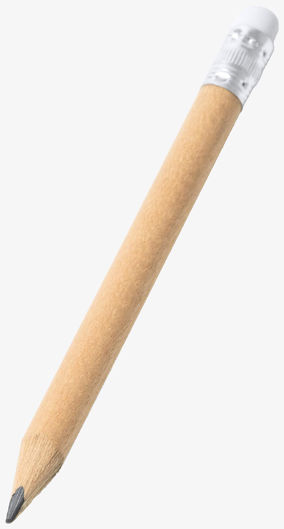 La mini matita in legno con gomma ha un corpo tondo e una finitura naturale. È destinata ad usi comuni di scrittura o disegno. La sua dimensione compatta facilita la presa e il trasporto.