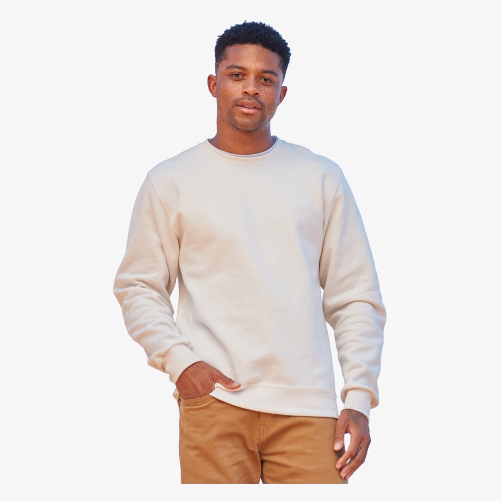 La Eco® premium blend sweatshirt è realizzata con un misto di cotone pettinato ring-spun e poliestere riciclato, offrendo una superficie morbida grazie al suo pile a 3 estremità in cotone. La struttura include un'evacuazione dell'umidità per un comfort prolungato e un'alta densità di punti per una zona di stampa liscia. La vestibilità comprende un collo rotondo, maniche lunghe con bordo e coste 2x2 su collo, maniche e vita.