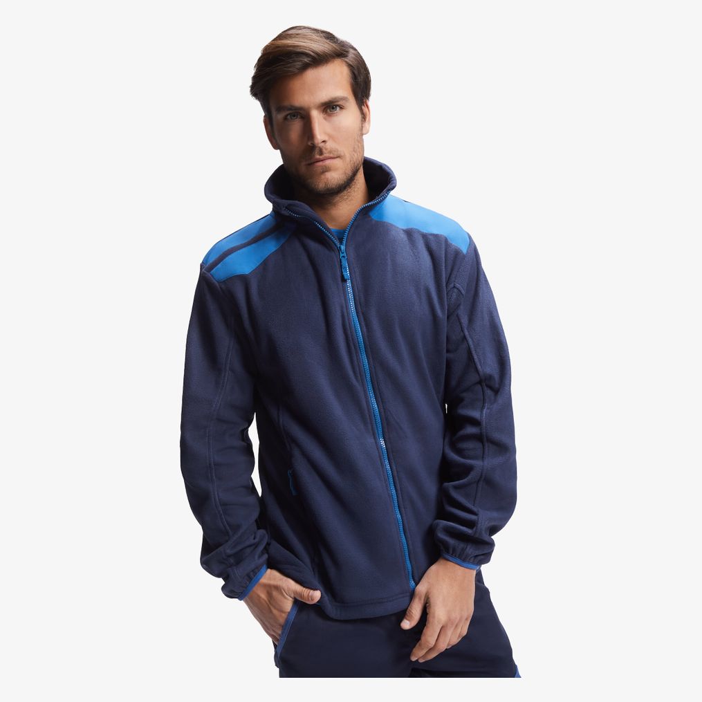 La felpa con zip Terrano è realizzata in micropile di poliestere con collo alto e chiusura zip a contrasto. Le spalle presentano dettagli a contrasto. Le tasche laterali hanno chiusure con zip. I polsini bassi sono elasticizzati con regolatori laterali.