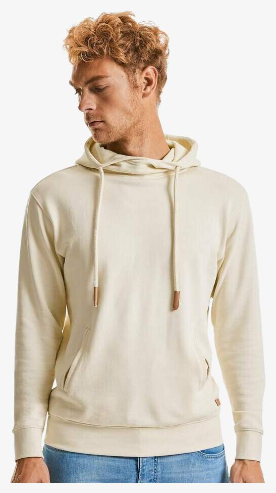 La felpa con cappuccio a collo alto è progettata con una vestibilità moderna e aderente. Utilizza un twill-terry non spazzolato e integra una piccola tasca interna vicino all'orlo per nascondere le etichette. I polsini e la vita sono dotati di bordi a coste con Lycra® per una migliore tenuta. Il cappuccio è realizzato a due pezzi per un posizionamento preciso della stampa.