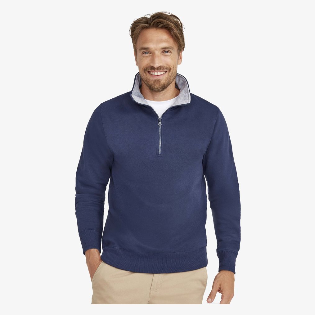 La felpa Scott con collo camionista e zip 1/4 è adatta all'uso quotidiano. Interno in felpa garzata, collo doppiato a contrasto, maniche set-in e finiture in costina con elastan.