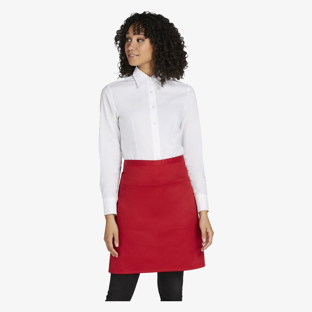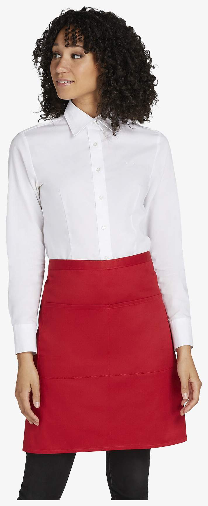 Il grembiule bistrot corto BRUSSELS è realizzato in tessuto twill fine composto da poliestere e cotone. Include una grande tasca centrale con due scomparti per riporre vari oggetti. I lacci robusti permettono una regolazione in vita.
