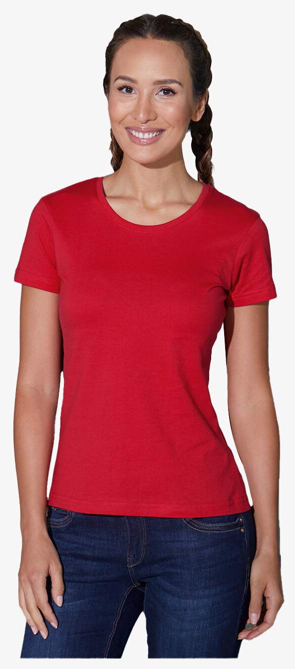 La tee-shirt da donna aderente con scollo rotondo \u00e8 realizzata in cotone pettinato ringspun con una vestibilit\"a sagomata e cuciture laterali per una calzata precisa. Il tessuto \u00e8 semplice e pre-restringente, lo scollo \u00e8 a coste 1x1 con nastro di rinforzo.