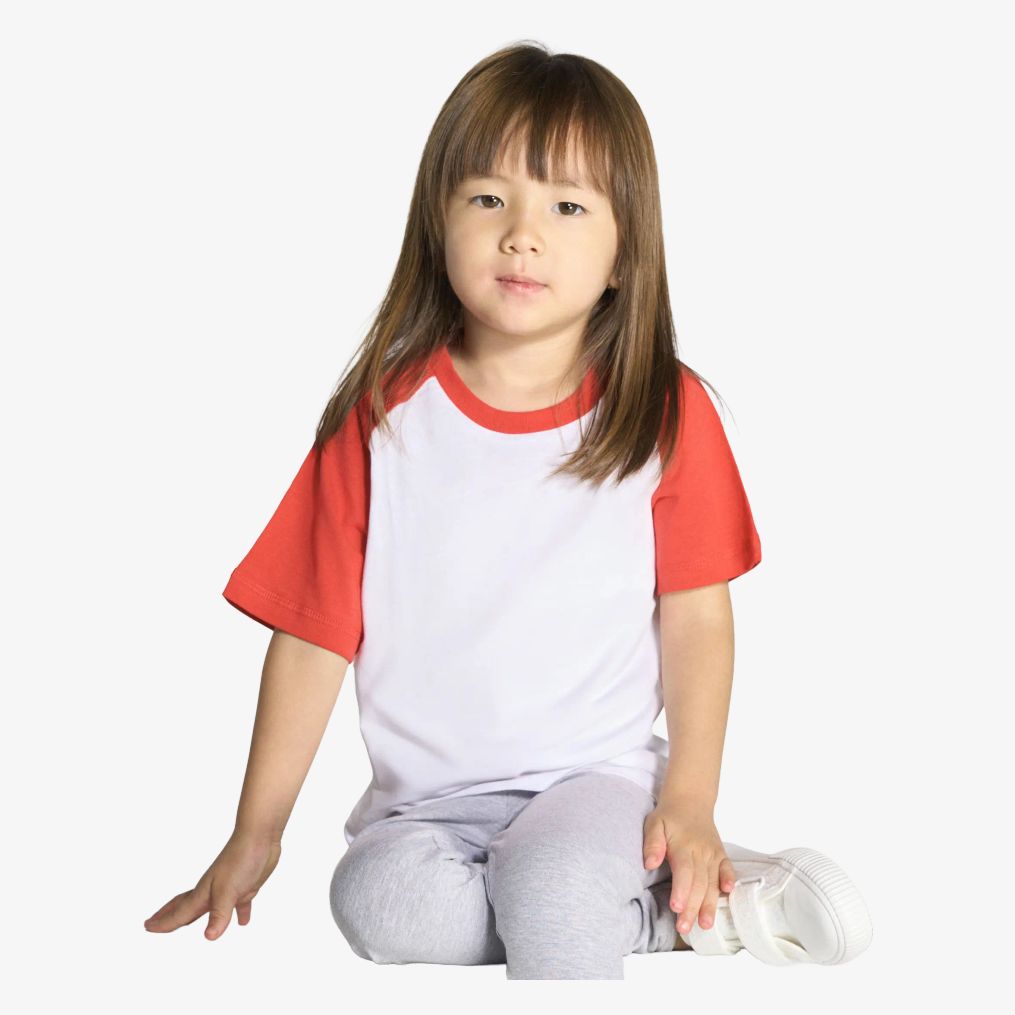 Maglia da baseball per bambini. Collo maniche raglan a contrasto. Cuciture laterali. Etichetta rimovibile. Composizione: 100% cotone pre-restringibile.