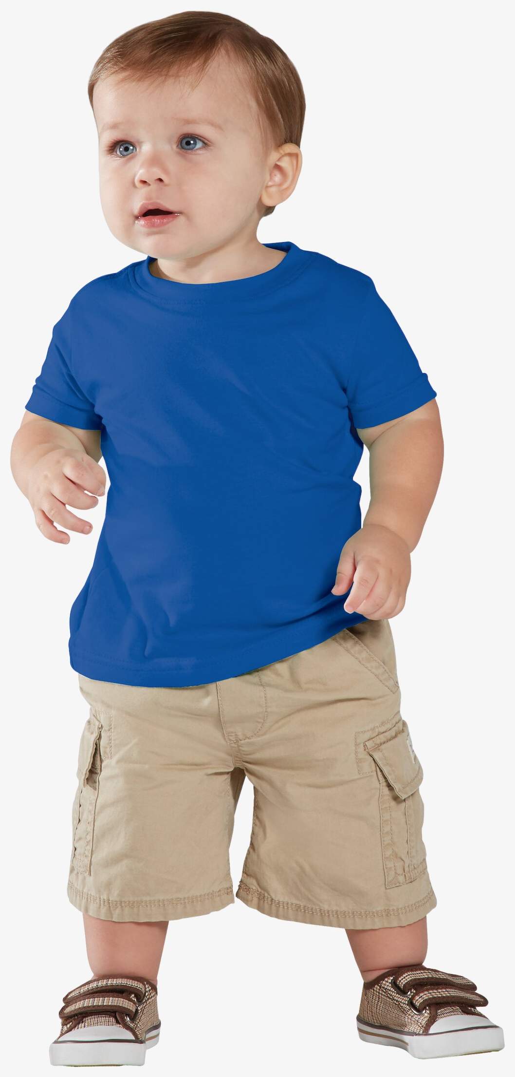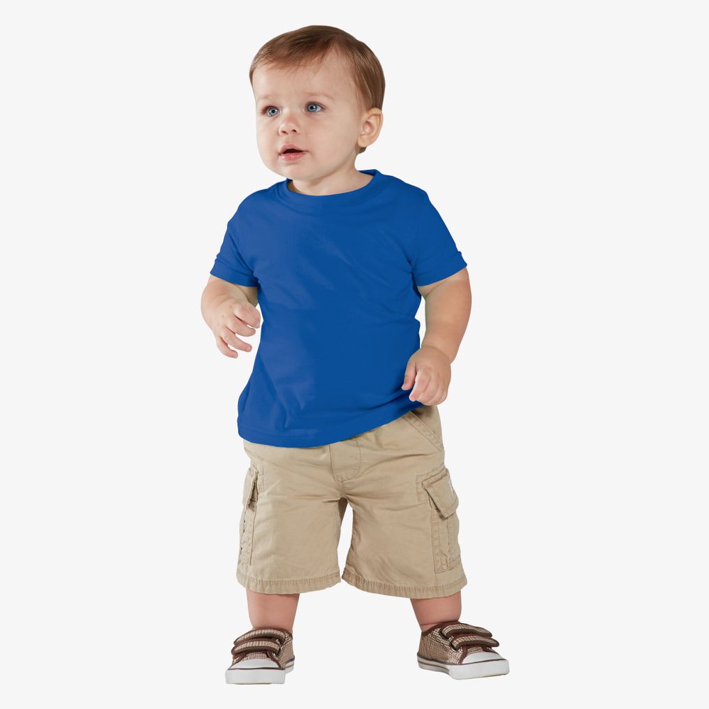 Il Infant Fine Jersey T-Shirt è un tee-shirt 100 cotone ringspun pettinato con collo a costine con doppia cucitura, banda spalla a spalla e orli delle maniche a doppia cucitura. L'etichetta Tearaway facilita la rimozione.