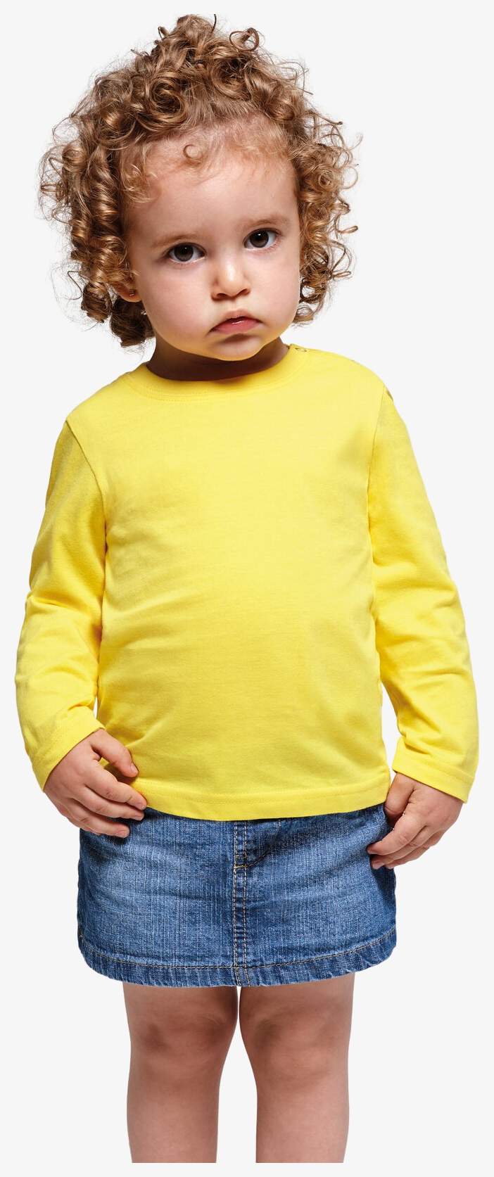 Il Baby L/S è un tee-shirt a manica lunga progettato per neonati. È tessuto a maglia fine offrendo un aspetto compatto. Il collo rotondo comprende un'apertura sulla spalla con bottoni a pressione per le taglie da 6M a 18M, mentre le taglie 2A non hanno apertura. Sono presenti cuciture laterali.