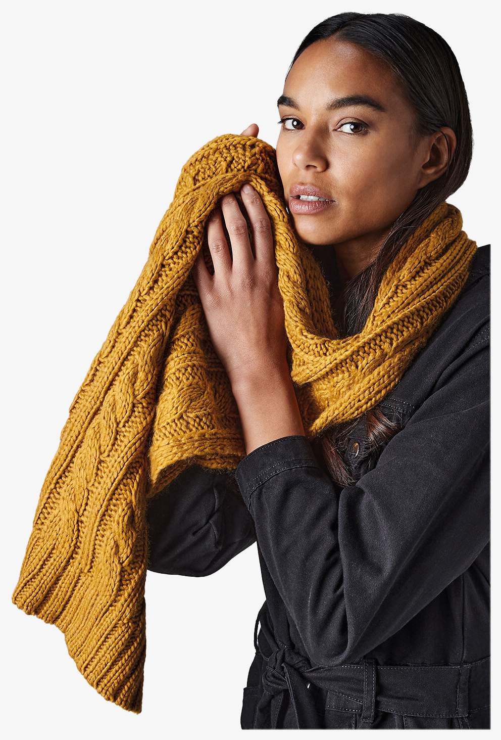 B499 - Écharpe en laine mélangée torsadée - mustard
