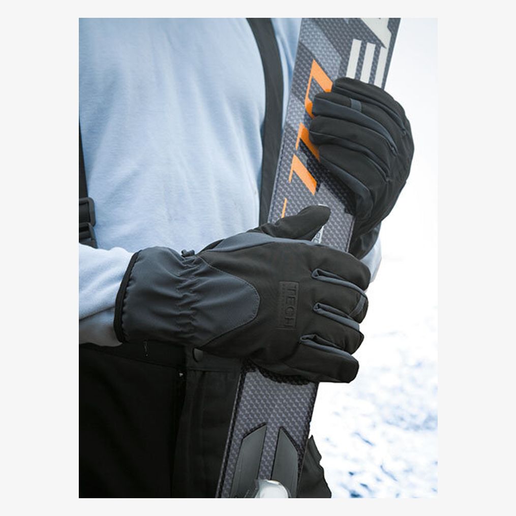 De Tech Performance Sport Glove is een 3-laags softshell handschoen met ademend TPU-membraan en polyester voering. De handpalm met rubbercoating verbetert de grip. Zijzakken.