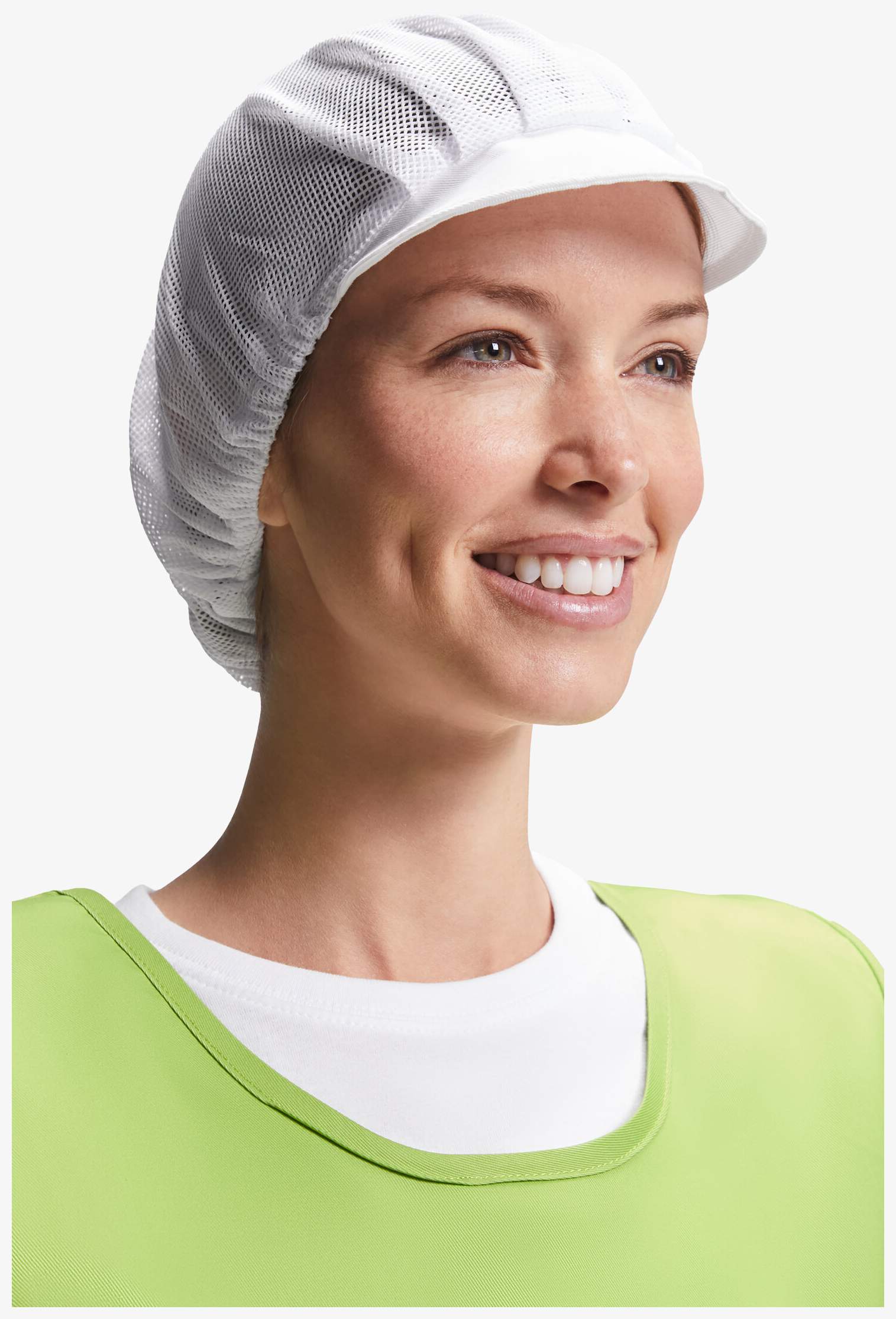 De baret pet Atala combineert een rooster bedoeld om het haar te verzamelen met een stijve klep. Het voorhoofd heeft plooien terwijl het ademende gaas is uitgerust met een verstelbaar elastiek aan de achterzijde.