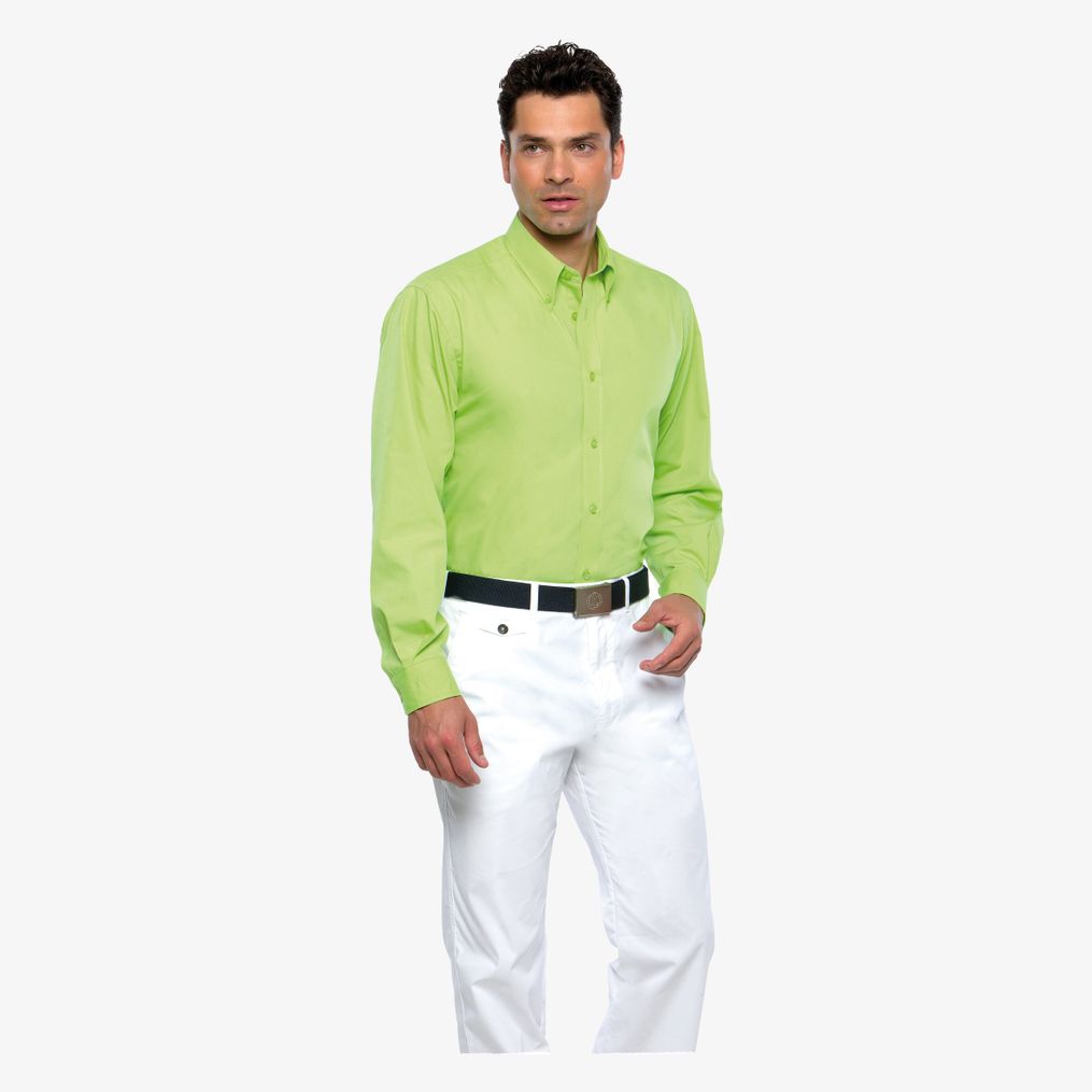 De Workforce Langarm Hemd is een overhemd met lange mouwen met een rechte button-down kraag, rugpas en afgeronde zoom. Optionele borstzak afhankelijk van configuratie, met reserveknoop en geweven label.