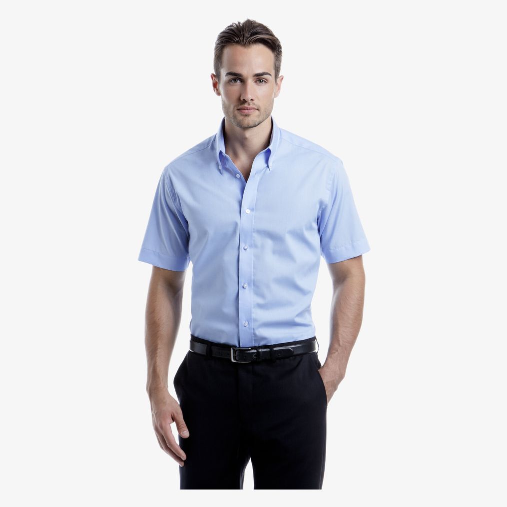 De City Business Shirt is een katoenen overhemd met strijkgemak, button-down kraagpunten, rugpas en afgeronde zoom, geschikt voor professioneel of dagelijks gebruik.