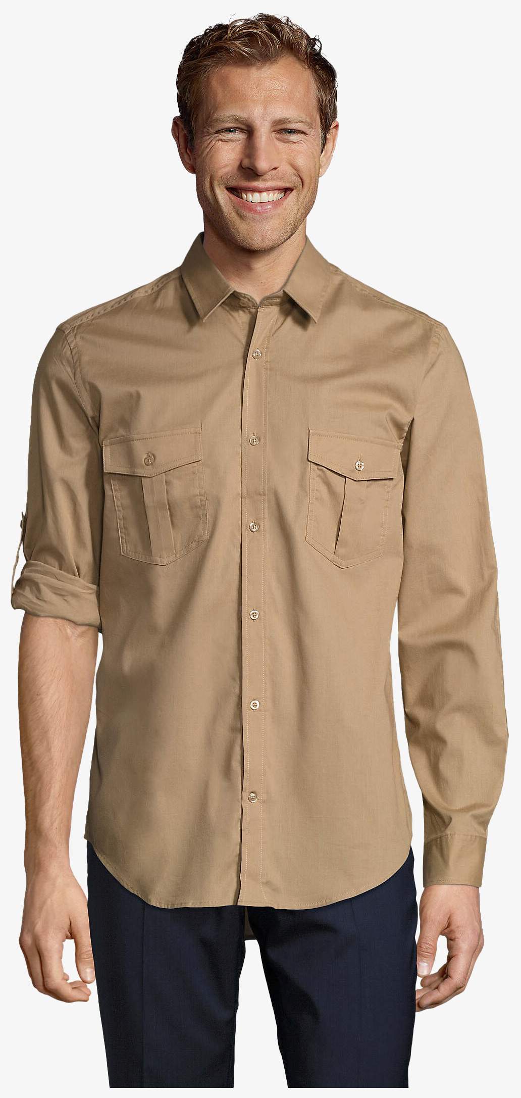 Het herenoverhemd Burma Men heeft een rechte snit met twee borstzakken met knoopflappen. Het heeft rechte manchetten met één knoop, een capuchonpat met knoop en een knoopsluiting met zeven knopen. De verstelpat maakt aanpassing van de mouwlengte mogelijk.