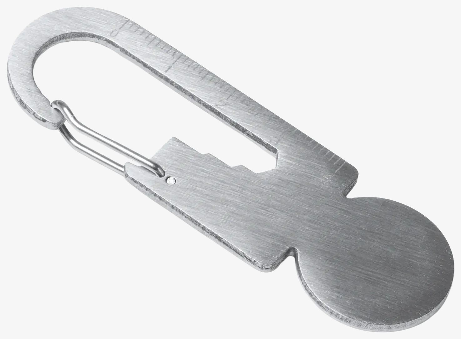 De multifunctionele sleutelhanger bevat een karabijnhaak bestemd voor gebruik met een winkelwagen. De vervaardiging in roestvrij staal 304 garandeert een weerstand geschikt voor dagelijks gebruik. De compacte afmetingen vergemakkelijken het transport en het gebruik.