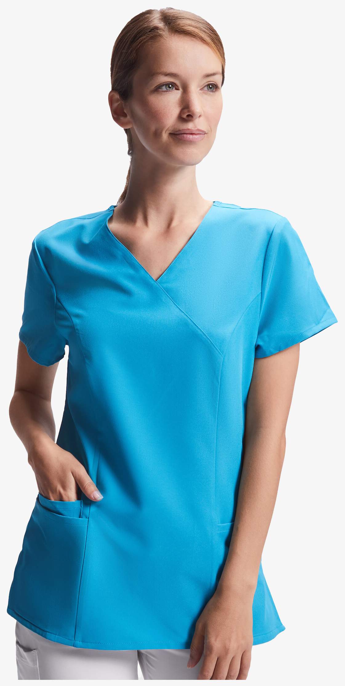 De korte mouwen blouse Ferox Woman heeft een overslaande V-hals en twee Franse zakken. Het label is afneembaar, wat het gebruik vergemakkelijkt.