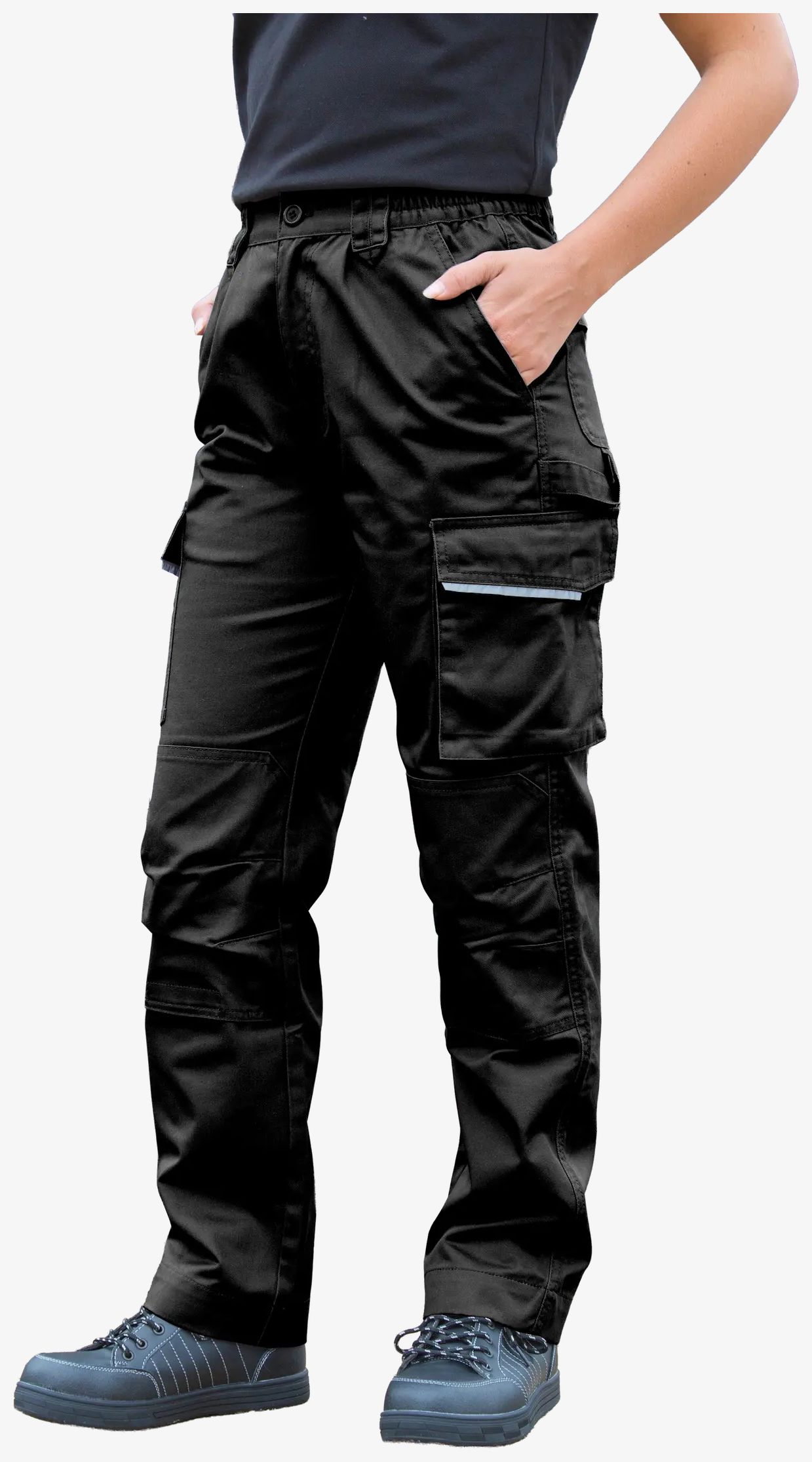 De Womens Action Trousers werkbroek is geschikt voor professioneel gebruik dankzij de elastische tailleband en de zakken voor kniebeschermers. Diepe zijzakken, een duimstokzak en een hamerlus vergemakkelijken de organisatie. Reflecterende banden verbeteren de zichtbaarheid in omgevingen met weinig licht.