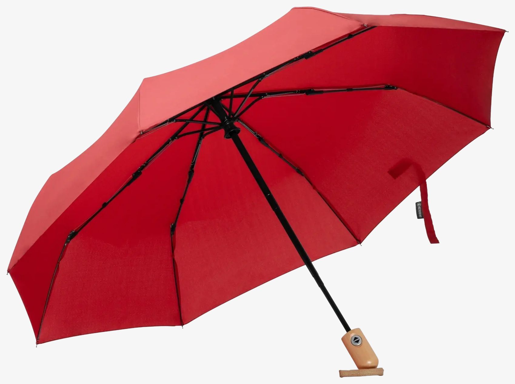 De automatische opvouwbare paraplu ALARIZ is gemaakt met winddichte pongee stof 190 T en een bamboe handvat voorzien van een katoenen band. Wordt geleverd met een bijpassende hoes.