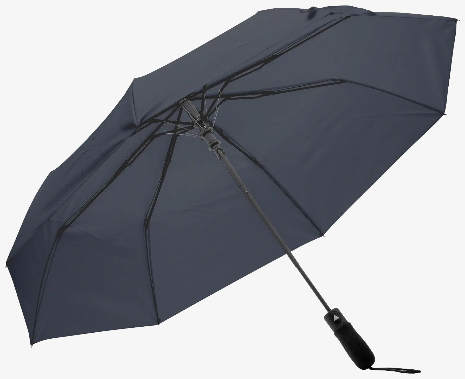 De opvouwbare paraplu MIYAGI heeft een automatische opening en een pongé stof 190 T met bijpassende hoes. Het handvat is van EVA en de baleinen zijn van zwart metaal wat stevigheid en wendbaarheid garandeert.