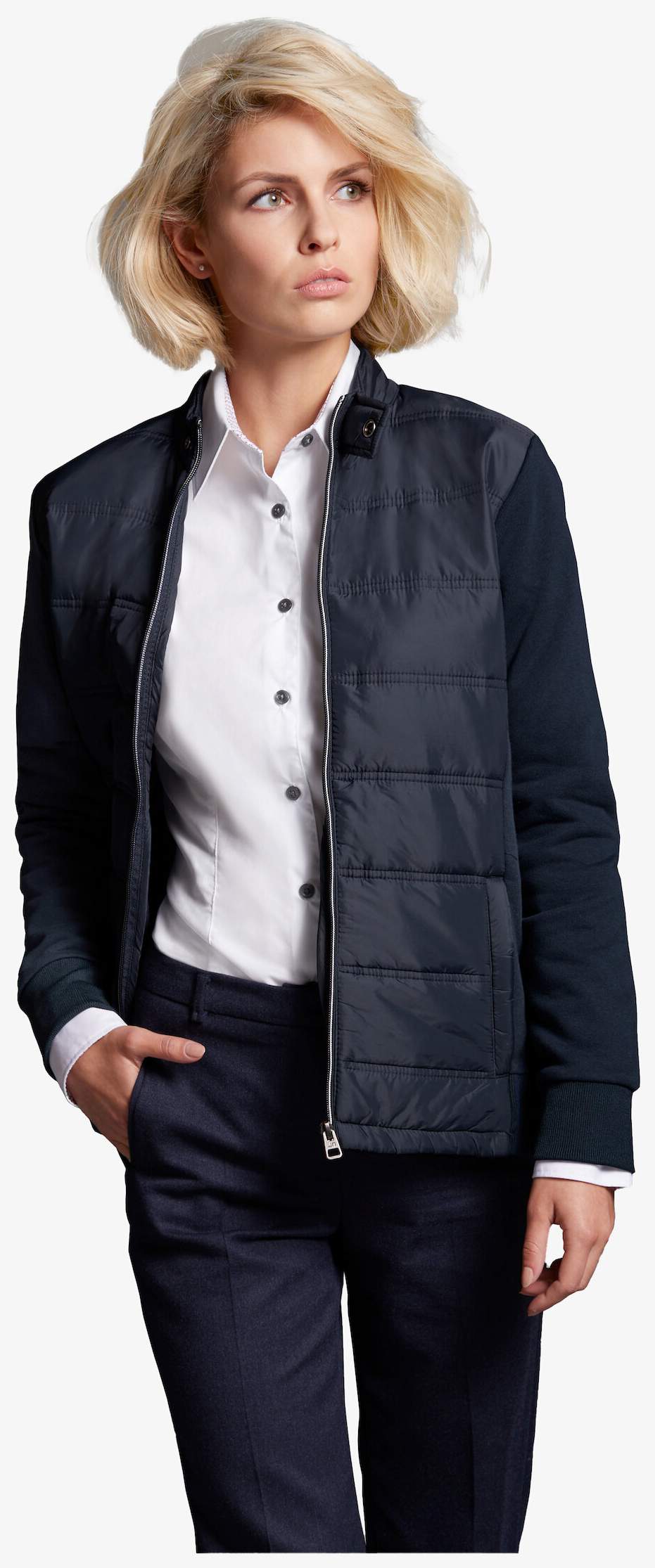 - Getailleerde pasvorm met zij- en binnenzakken Gewicht: 280g/m²