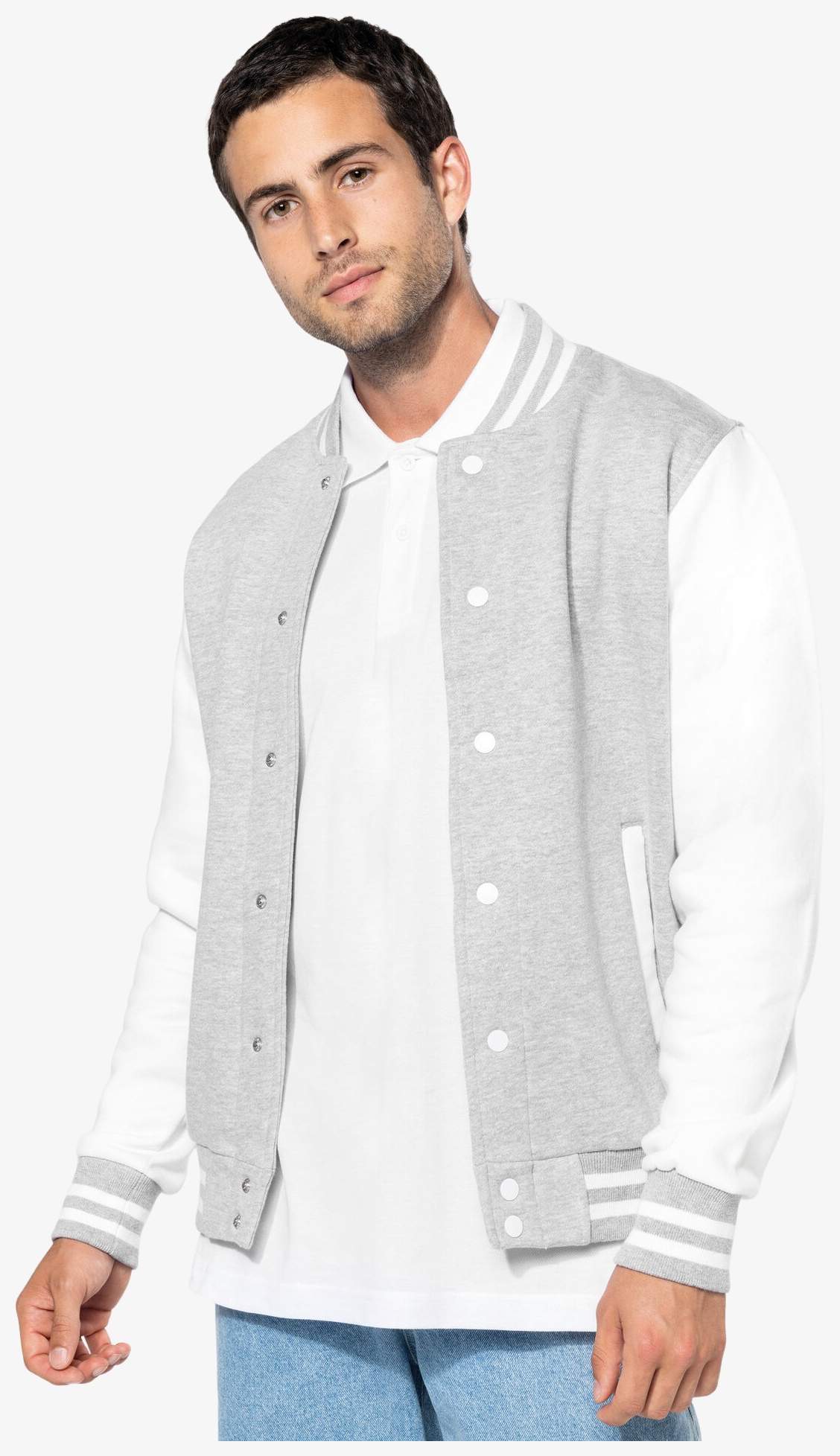 Het teddy fleece jack k497 is gemaakt van geborsteld 3-draads fleece bestaande uit 70% katoen en 30% polyester. Het heeft contrasterende ingezette mouwen en een voorzijde met contrasterende drukknopen. De boord bij de kraag, mouwen en onderkant van het kledingstuk bevat twee contrasterende biezen. Twee contrasterende paspelzakken aan de voorkant. Een chevron verstevigingsband met ophanglus bevindt zich aan de binnenzijde van de kraag.