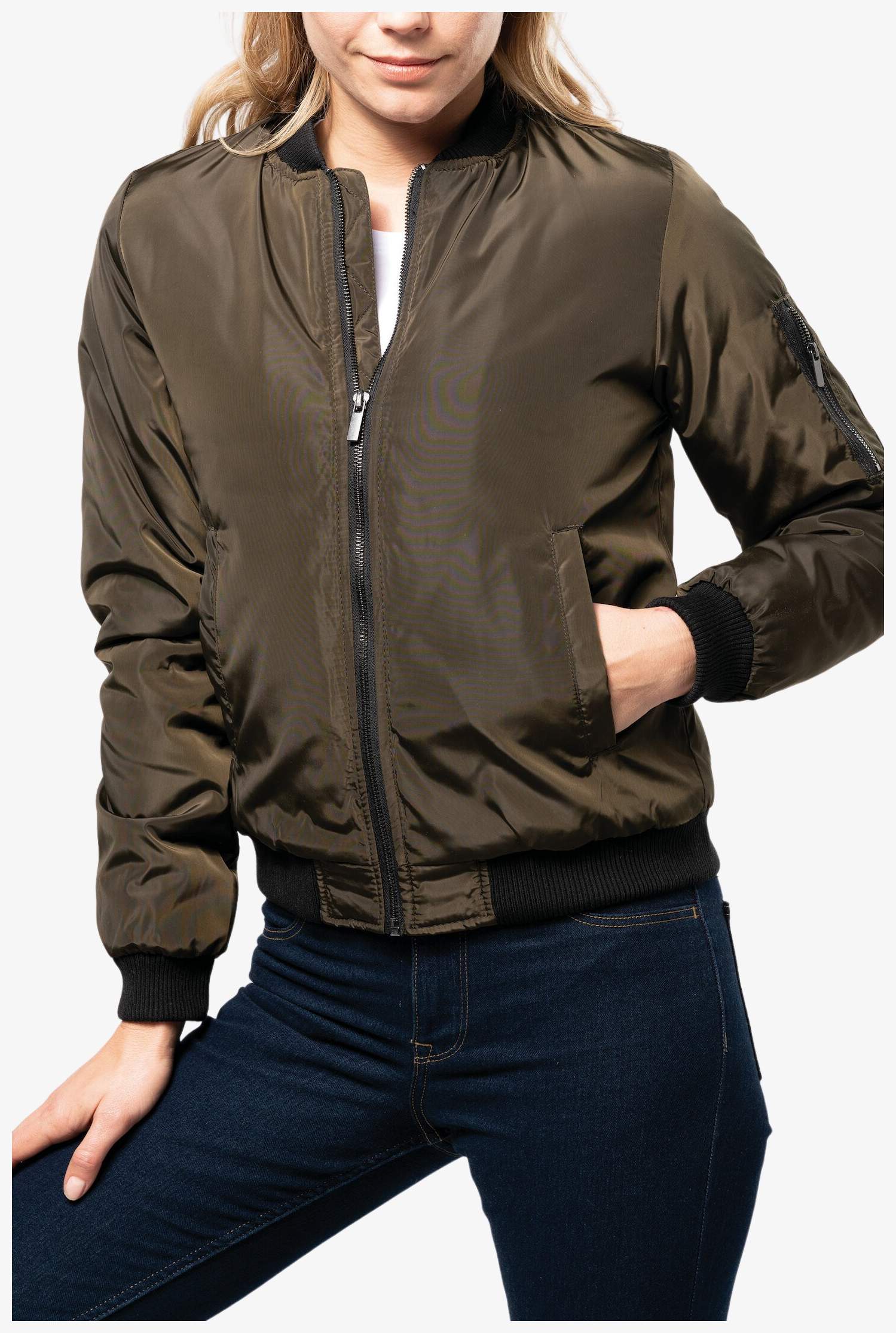 De polyester bomberjas k6123 bevat een doorgestikte voering van 100% polyester en een ritssluiting. Hij heeft meerdere zakken voor het opbergen van persoonlijke items en 2x2 ribboorden aan de kraag, mouwuiteinden en zoom.