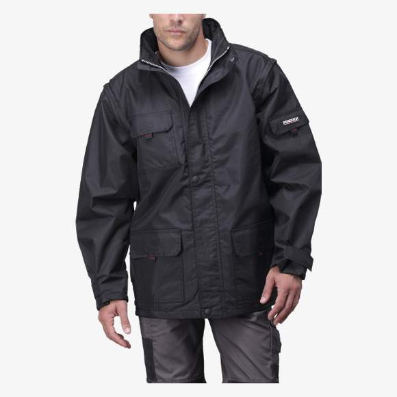 De Sport Jacket 2 is een gewatteerde jas van microvezelnylon met weatherblock-coating. Afneembare mouwen, buitenzakken met klittenbandsluiting waaronder een op de mouw, en binnenzakken. Verstelbare manchetten met klittenband.
