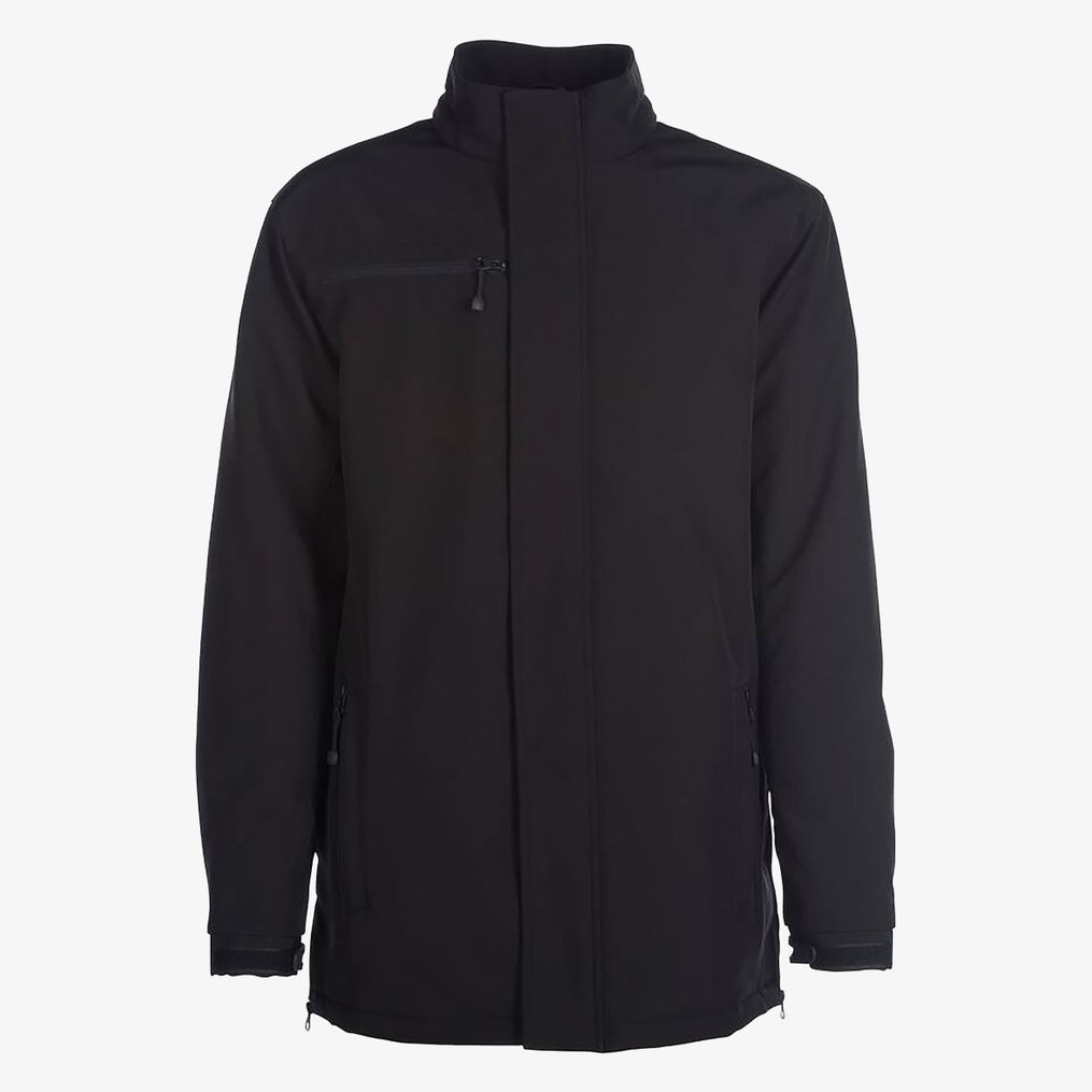 De doorgestikte Softshell parka Wellington Men is gemaakt uit drie lagen. Heeft een aangesloten pasvorm, een borstzak met rits, twee ritszakken en twee open zijzakken, evenals een binnenzak voor een tablet. De manchetten zijn verstelbaar met klittenband.