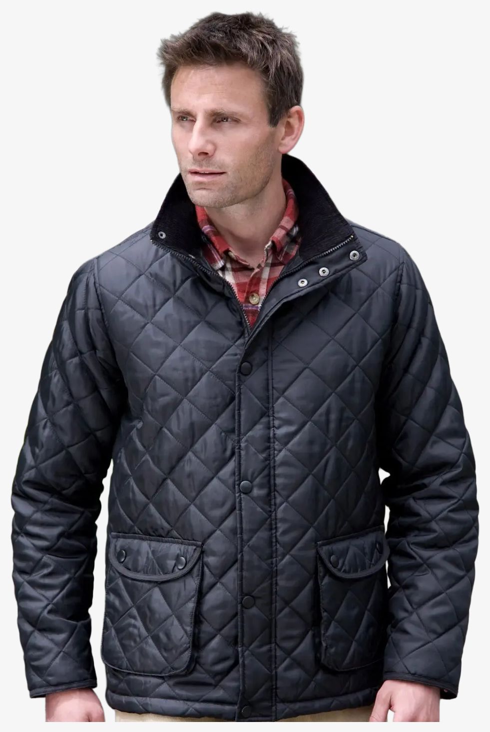 De VESTE URBAINE STYLE CAVALIER is geschikt voor stedelijk gebruik bij koel weer, met een buitenkant van polyester taffeta en een binnenkant van wattering. Rits met overslag met drukknopen, zijzakken en zijsplitten met drukknopen. Corduroy kraag.