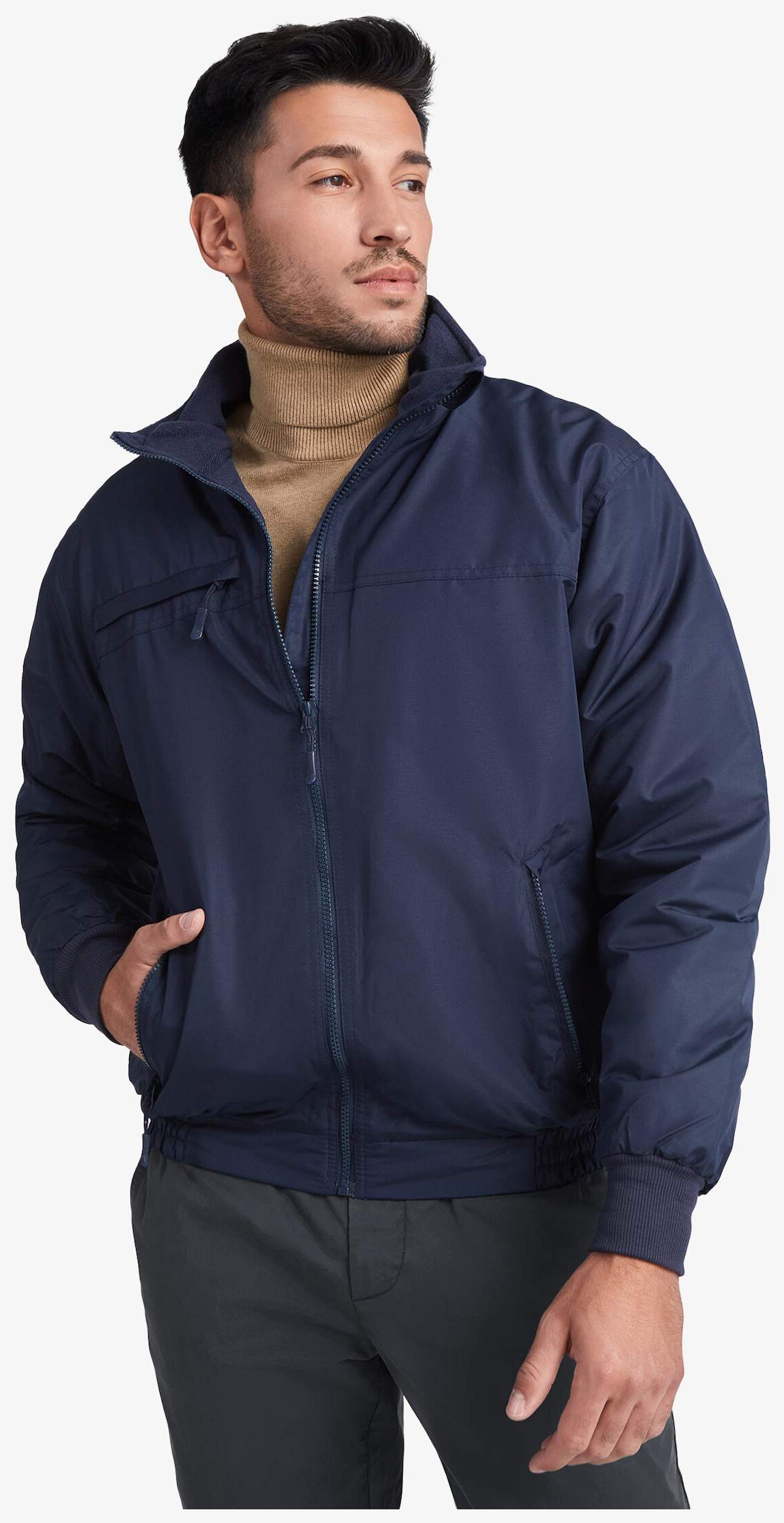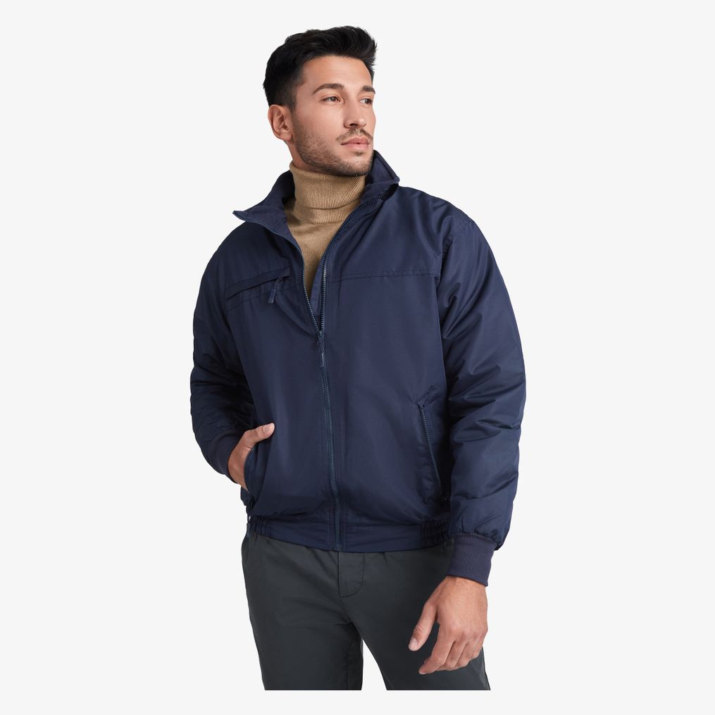 De gewatteerde polyester parka jack Yukon is gemaakt van duurzaam polyesterstof met een opstaande kraag. Het heeft een voorrits in dezelfde tint met kinbescherming en schuifknop. Drie buitenzakken met klep: één op de rechterborst en twee aan de zijkanten. De binnenvoering is van microvezelstof in dezelfde tint. Cuffs met 1x1 ribstructuur. Water- en winddicht model.