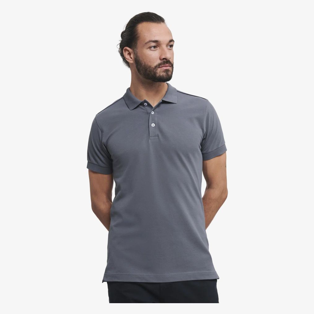 De polo stretch aansluitend heren combineert een nauwsluitende pasvorm met een kleine kraag en een knoopsluiting met 3 knopen. De zijsplitten in chevron en de contrasterende knopen maken het model compleet. De samenstelling varieert per kleur: 95% katoen en 5% elastaan, behalve de kleur Light Oxford die 84% katoen, 14% viscose en 4% elastaan bevat.