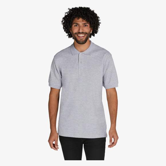 De polycotton polo combineert polyester en piqué katoen met kettingdraad, met varianten voor sommige kleuren. Hij heeft een knoopsluiting met 2 knopen inclusief reserveknoop, rand aan kraag en mouwen voor behoud, evenals zijopeningen.