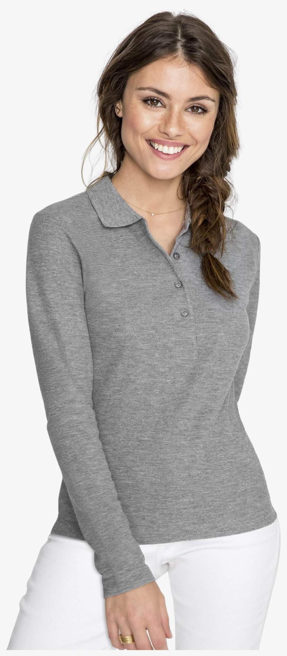De Podium damespolo met lange mouwen van piquétricot van 100% gekamd katoen, met ribkraag, nekband en 4-knoops sluiting in toon-op-toon. Getailleerde pasvorm met zijsplitten voor meer bewegingsvrijheid.