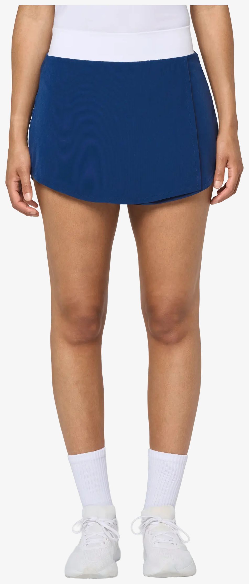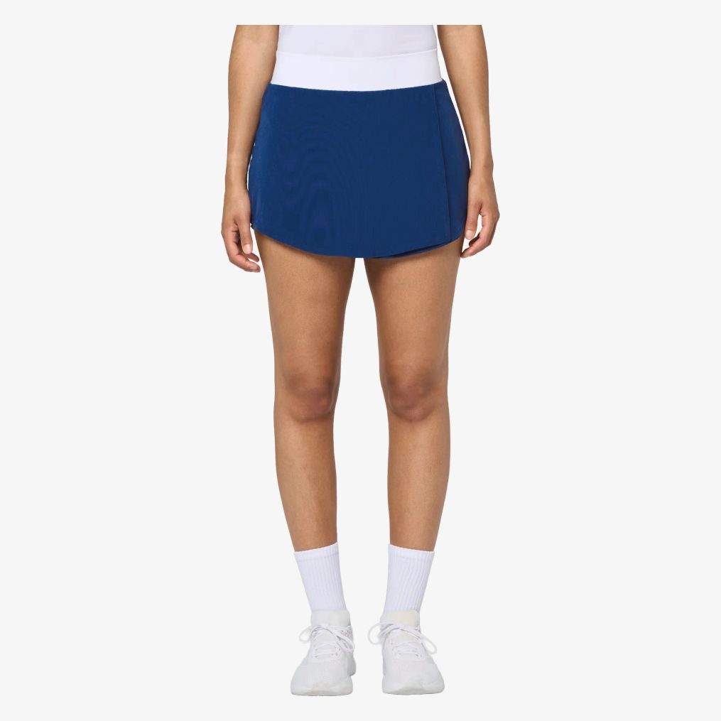 De padelrok met geïntegreerde short heeft een elastische tailleband over de gehele hoogte voor passende ondersteuning. De overslagvorm en de plooivergemakkelijking aan de achterkant bevorderen bewegingsvrijheid. De binnenbroek heeft een contrasterende kleur.