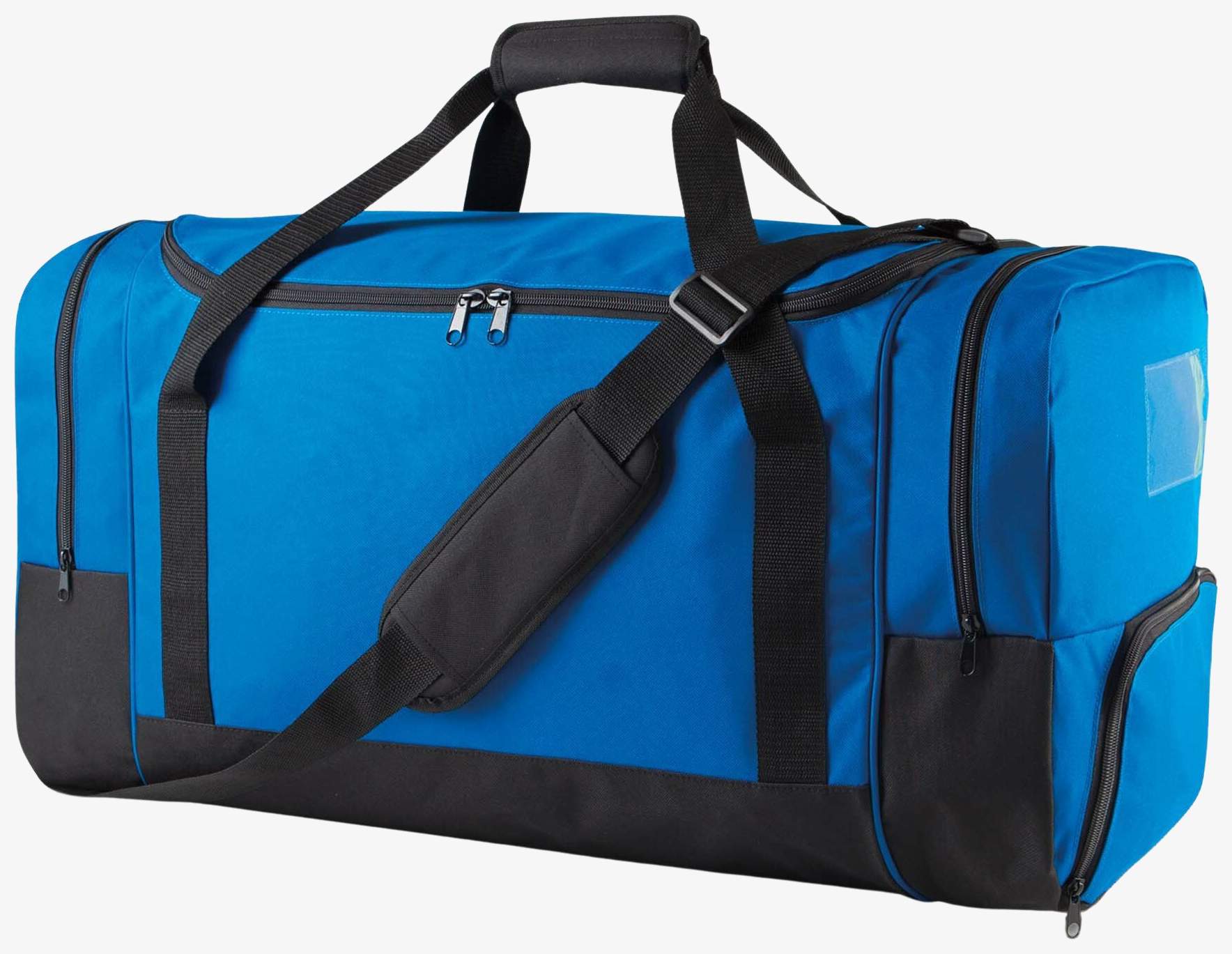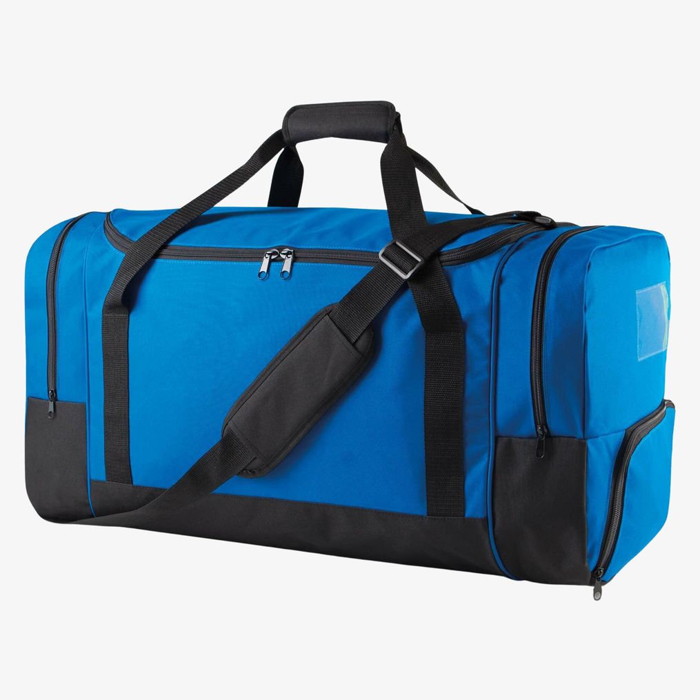 De sporttas van 600D polyester biedt een capaciteit van 85 liter geschikt voor teamsporten. Hij heeft twee zijvakken, een speciaal vak voor schoenen en een afneembare versterkte schouderband voor vervoer. Een transparante labelhouder vergemakkelijkt identificatie.
