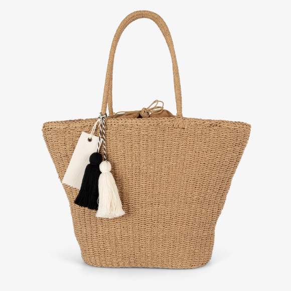 De panier shopping bestaat uit een buitenkant van papiervezel en een binnenvoering van gerecycled polyester met een kleine geïntegreerde zak. Het is uitgerust met gevlochten touwhandvatten en versierd met een bicolor katoenen pompon evenals een groot katoenen label van 12x5 cm.