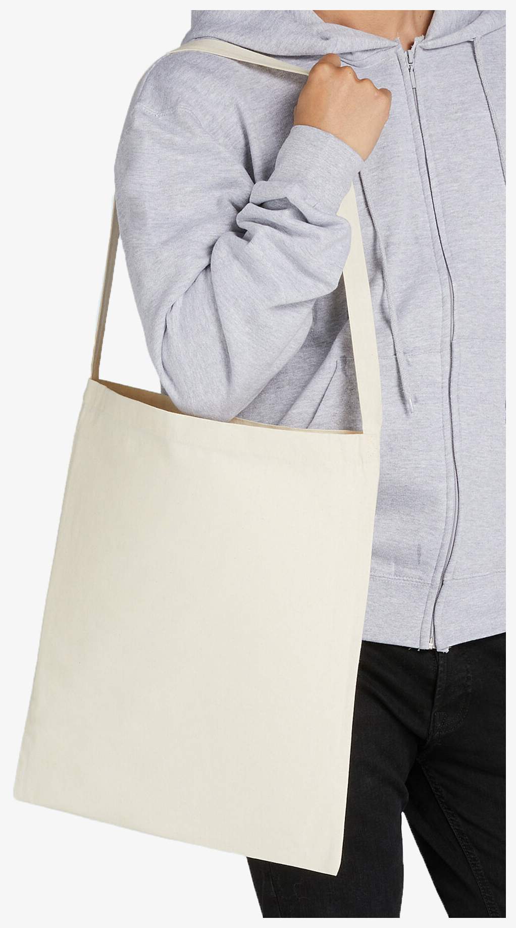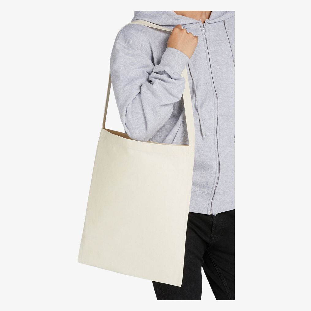 De katoenen shopper Cotton Tote Single Handle is een variant met één hengsel van de klassieke tote bag. Het bevat een handgreep versterkt met een kruissteek voor meer stabiliteit en binnenvoeringen met overlocksteek. Het lange hengsel meet ongeveer 85 cm, wat zorgt voor een geschikte grip.