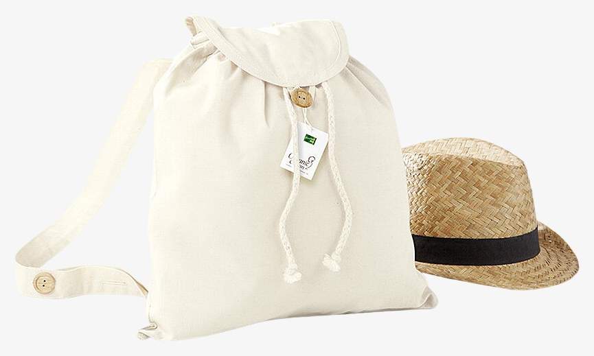 De rugzak is gemaakt van 100% biologische katoen gecertificeerd door Control Union. Heeft een koordsluiting en een houten knoop. De schouderbanden zijn verstelbaar en er is een handgreep voor gemakkelijke draagbaarheid.