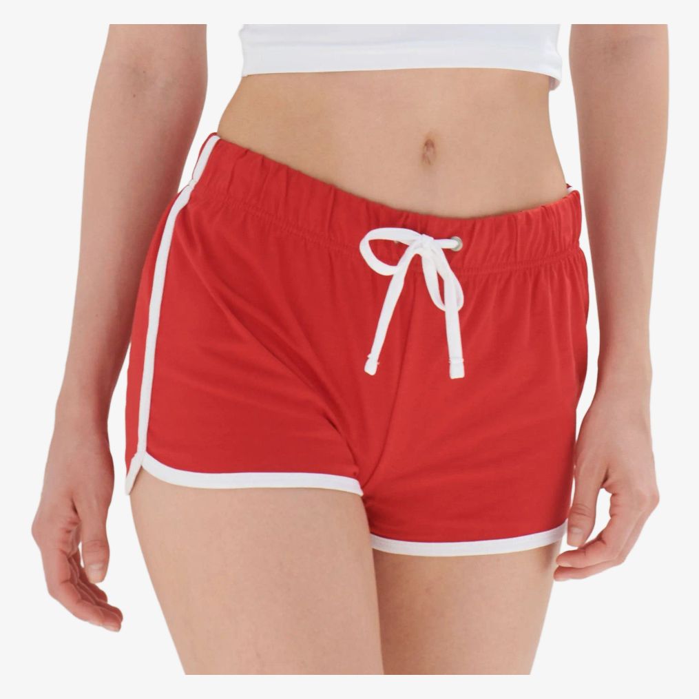 De dames retro short heeft een vintage stijl met contrasterende koordbies. De samenstelling varieert per kleur: 100% katoen of 85% katoen en 15% viscose voor de kleur heather grey.