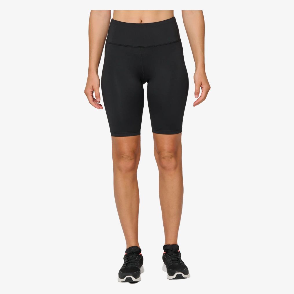 De mid-length dameslegging is gemaakt van een stof met gerecycled polyester met een zachte aanraking. Hij heeft een skinny pasvorm en een brede tailleband voor extra comfort. Een klein opbergzakje is geïntegreerd aan de binnenkant van de tailleband aan de voorkant. Ton-sur-ton platte naden aan de tailleband en het kruis versterken de afwerking.