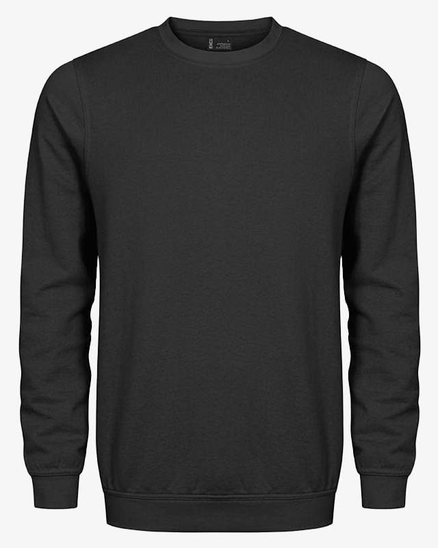 Unisex polycotton sweater met een glad oppervlak dat niet pluist. Voorzien van elastische kraag, manchetten en taille. Een halve maas afwerkband bevindt zich in de kraag.