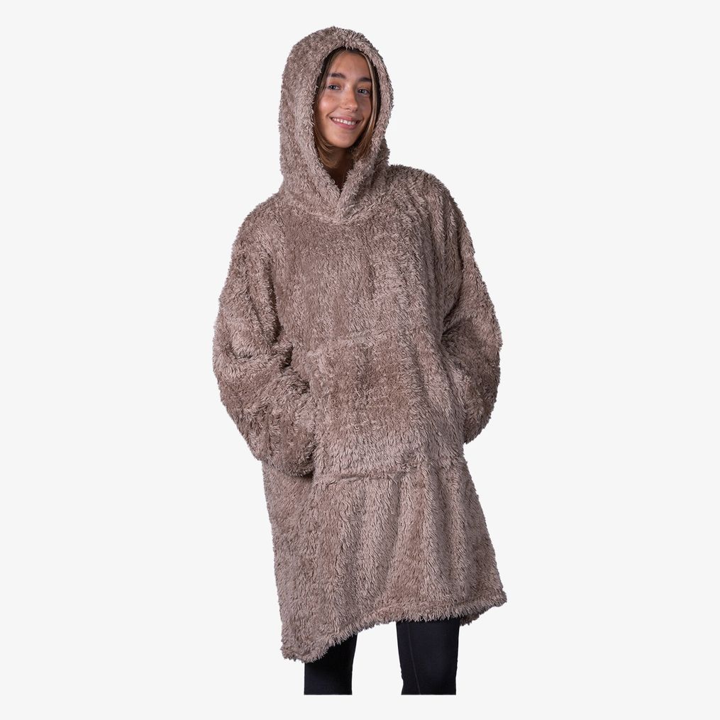De Ribbon capuchontrui in fleece stof heeft een ultrazacht oppervlak met een grote voorkantzak om de handen warm te houden. De oversized pasvorm in één maat meet 82 cm, geschikt voor de meeste lichaamsvormen.